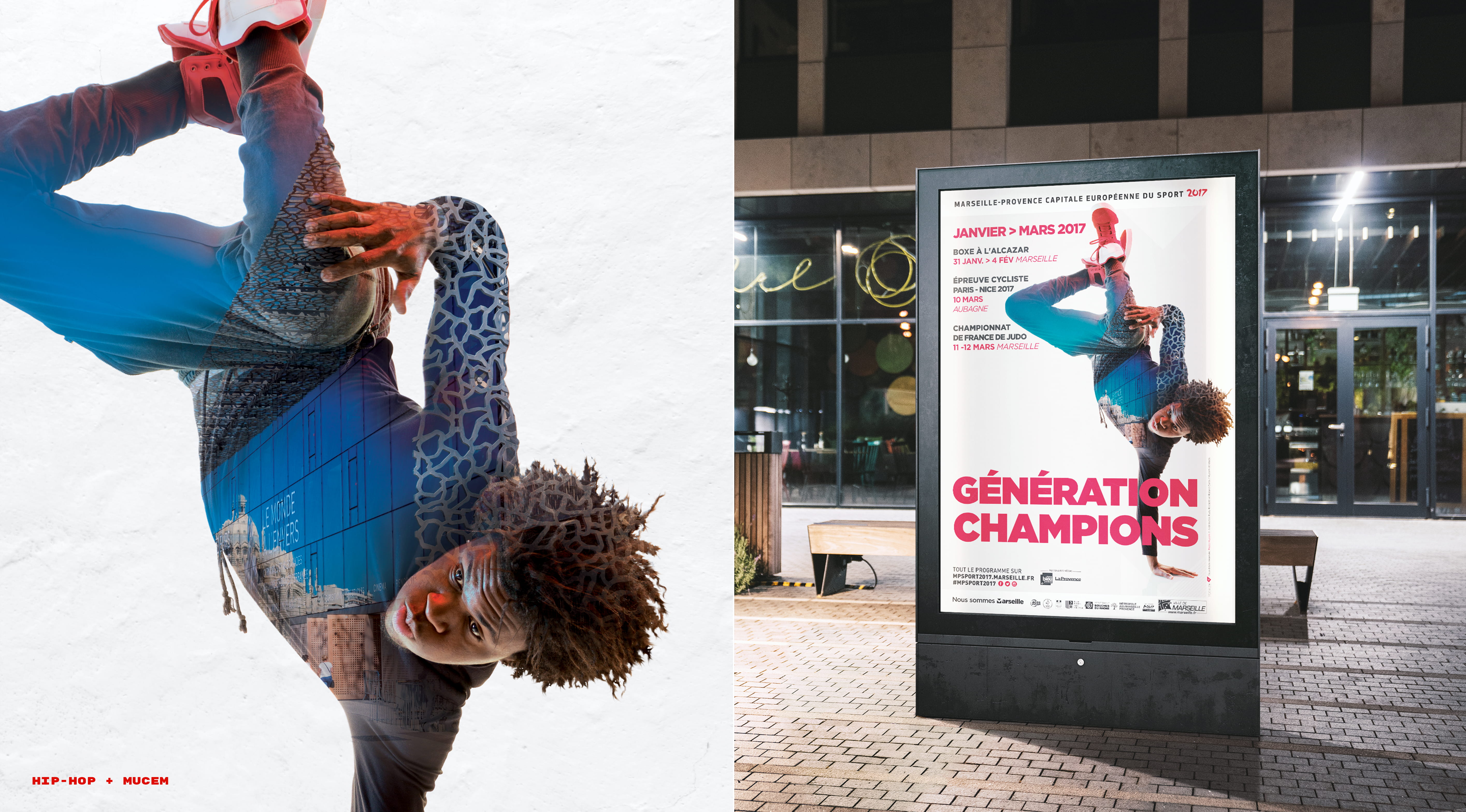 L’idée principale de la communication était de faire coexister le sport et la ville en un seul visuel et à chaque temps forts son visuel.