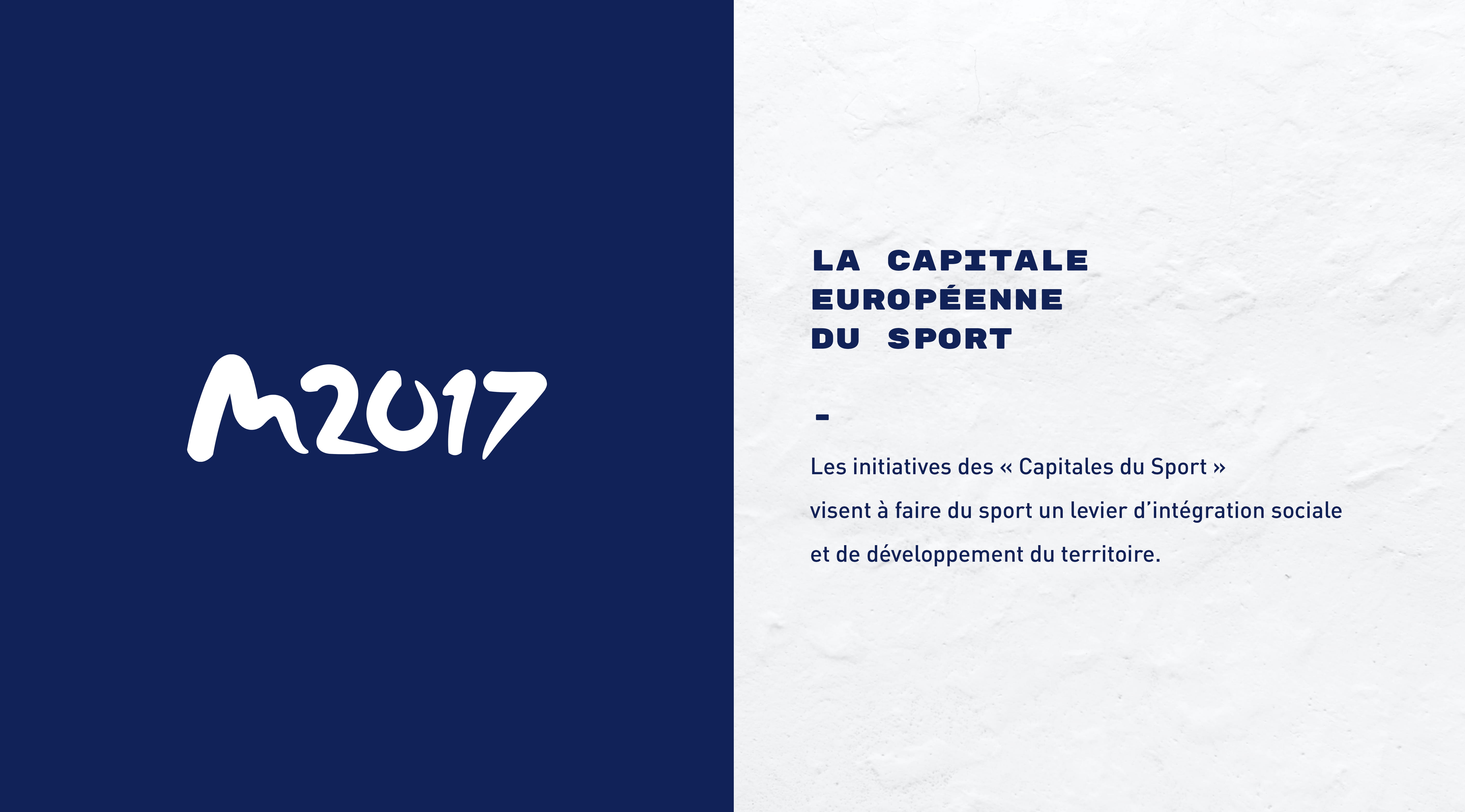 Après le succès de Marseille Capitale Européenne de la Culture, la ville a voulu continuer dans sa bonne lancée et a fait de Marseille la Capitale Européenne du Sport en 2017. Des événements sportifs se sont déroulés tout au long de l’année, coupée en 4 temps forts avec en bonus un stand avec un parcours de jeu sur la foire de Marseille.