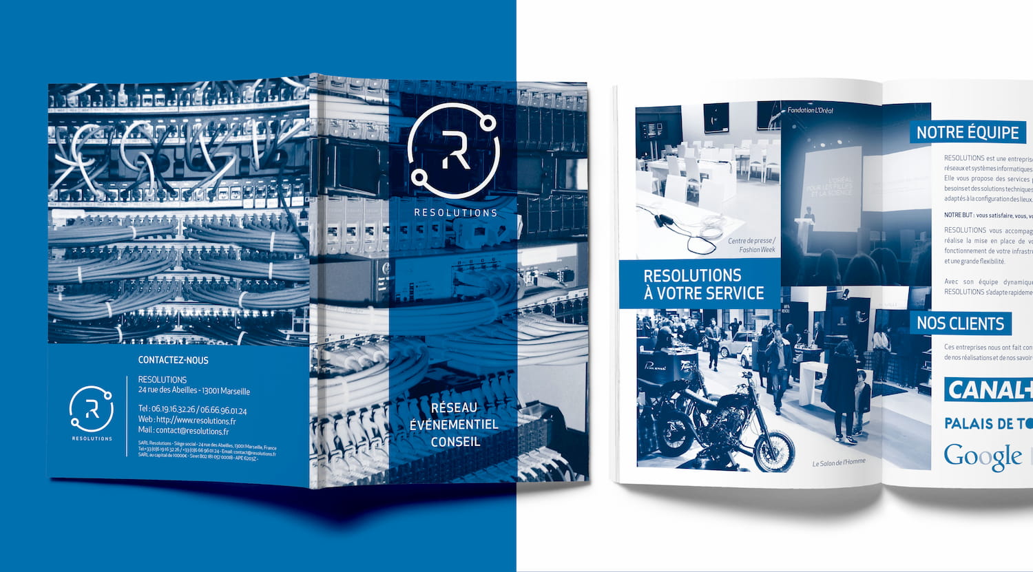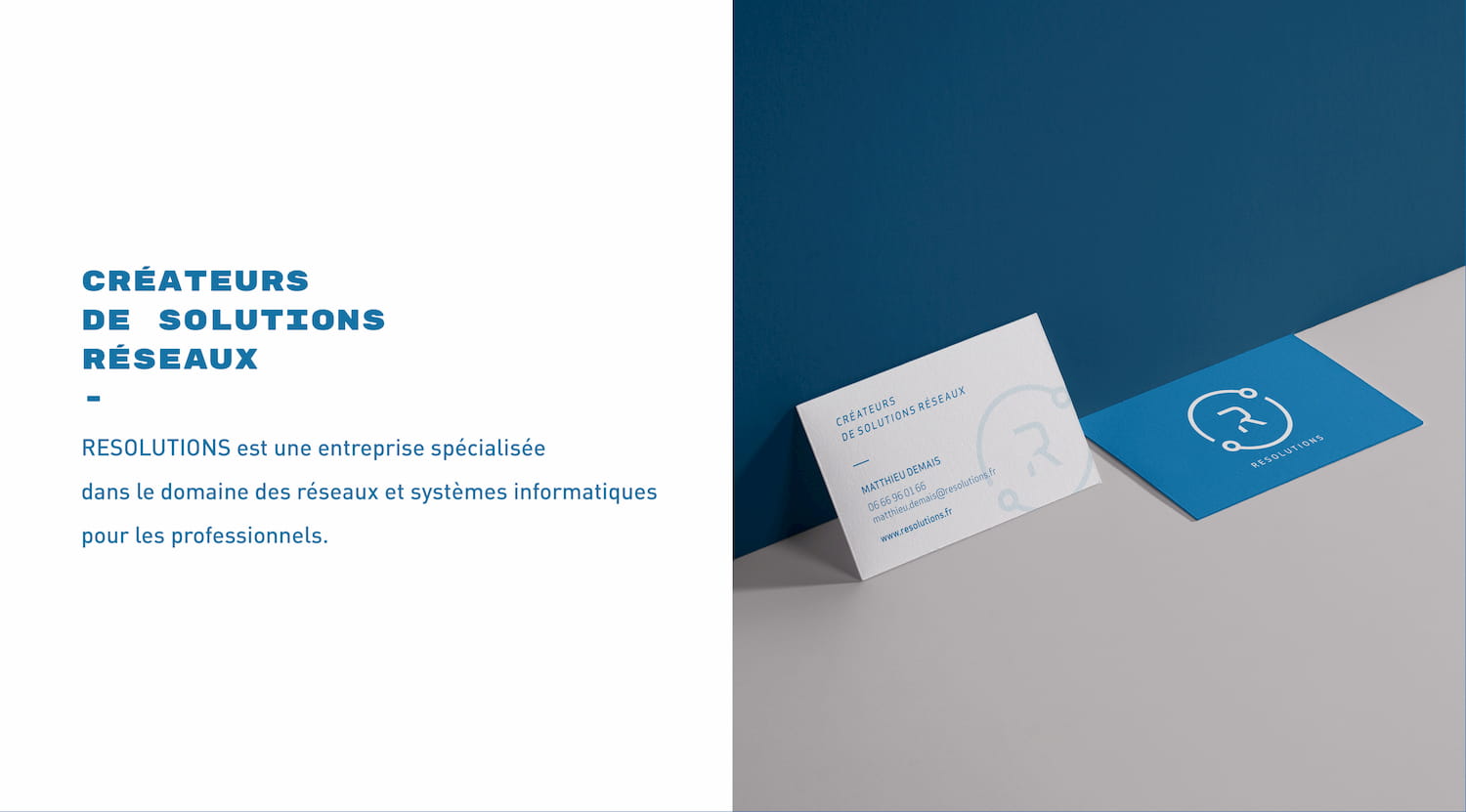 Création du logo et de l'identité visuelle pour Résolutions, une entreprise spécialisée dans le domaine des réseaux et systèmes informatiques pour les professionnels, fondés par deux jeunes ingénieurs réseaux et systèmes.